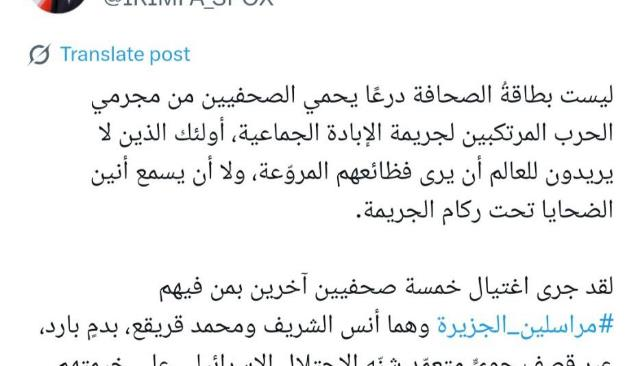 محکومیت شدید کشتار خبرنگاران شبکه الجزیره در شهر غزه