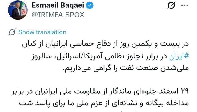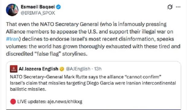 - ما هرگونه کوچاندن اجباری ساکنان غزه را قویاً محکوم میکنیم و این را جنایت جنگی دیگری از سوی رژیم صهیونیستی به شمار می آوریم و باید این جنایت ضد بشری فورا متوقف گردد.