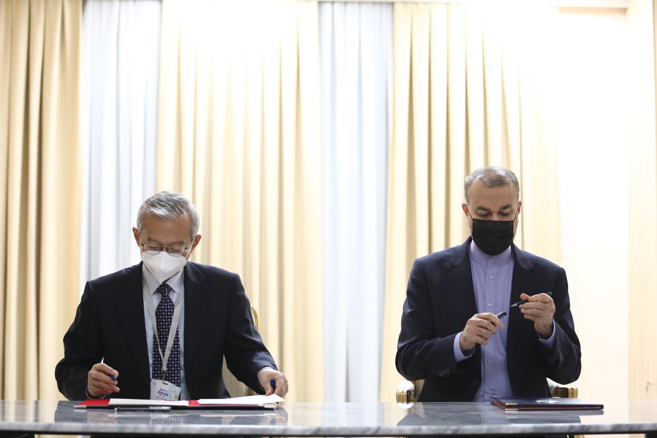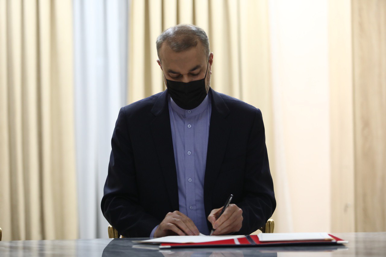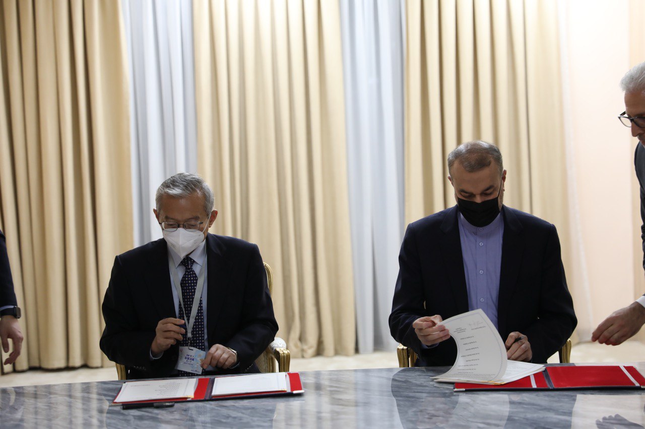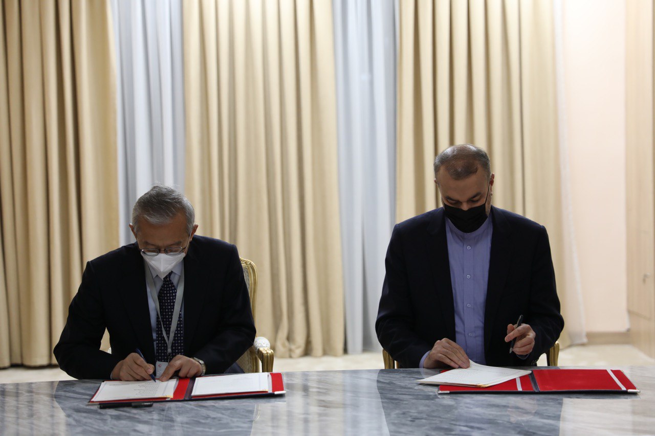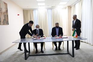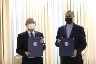 امضای سند یادداشت تعهدات عضویت دائم جمهوری اسلامی ایران نزد سازمان همکاری شانگهای بین وزیر خارجه و دبیرکل سازمان در شهر تاریخی سمرقند