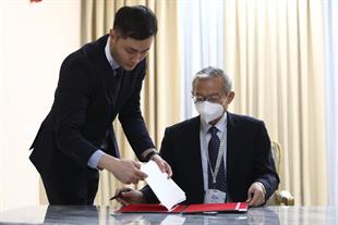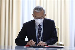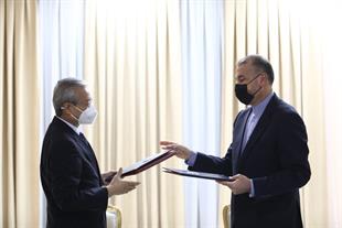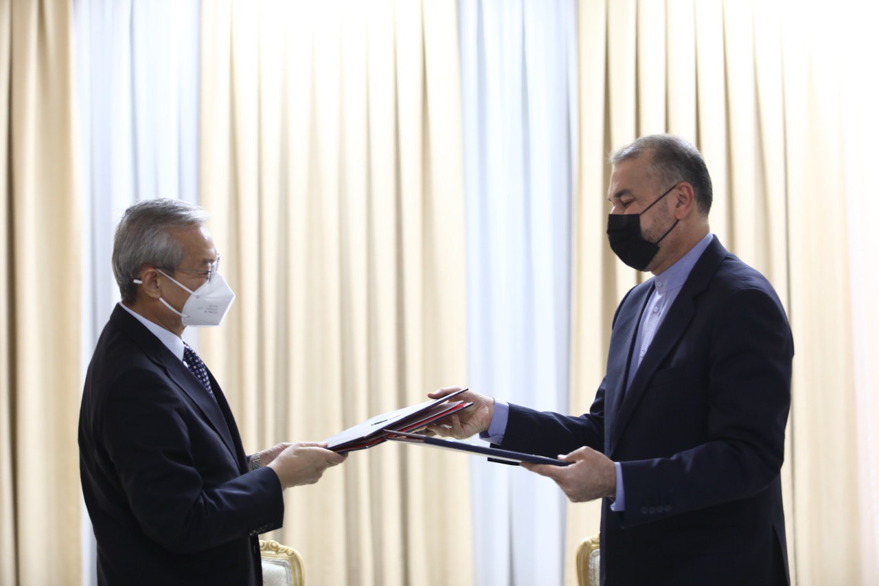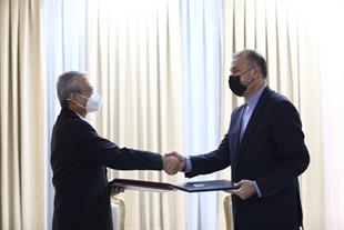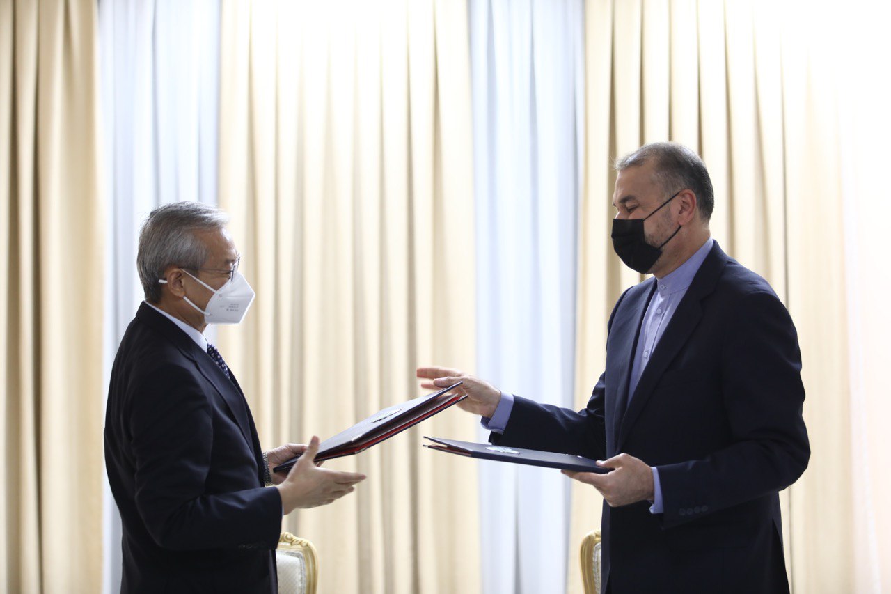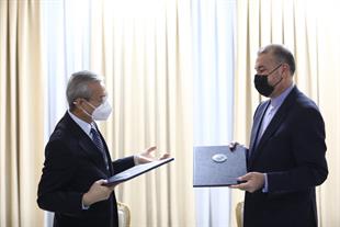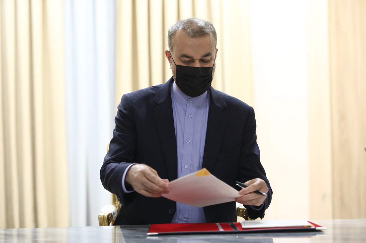 امضای سند یادداشت تعهدات عضویت دائم جمهوری اسلامی ایران نزد سازمان همکاری شانگهای بین وزیر خارجه و دبیرکل سازمان در شهر تاریخی سمرقند