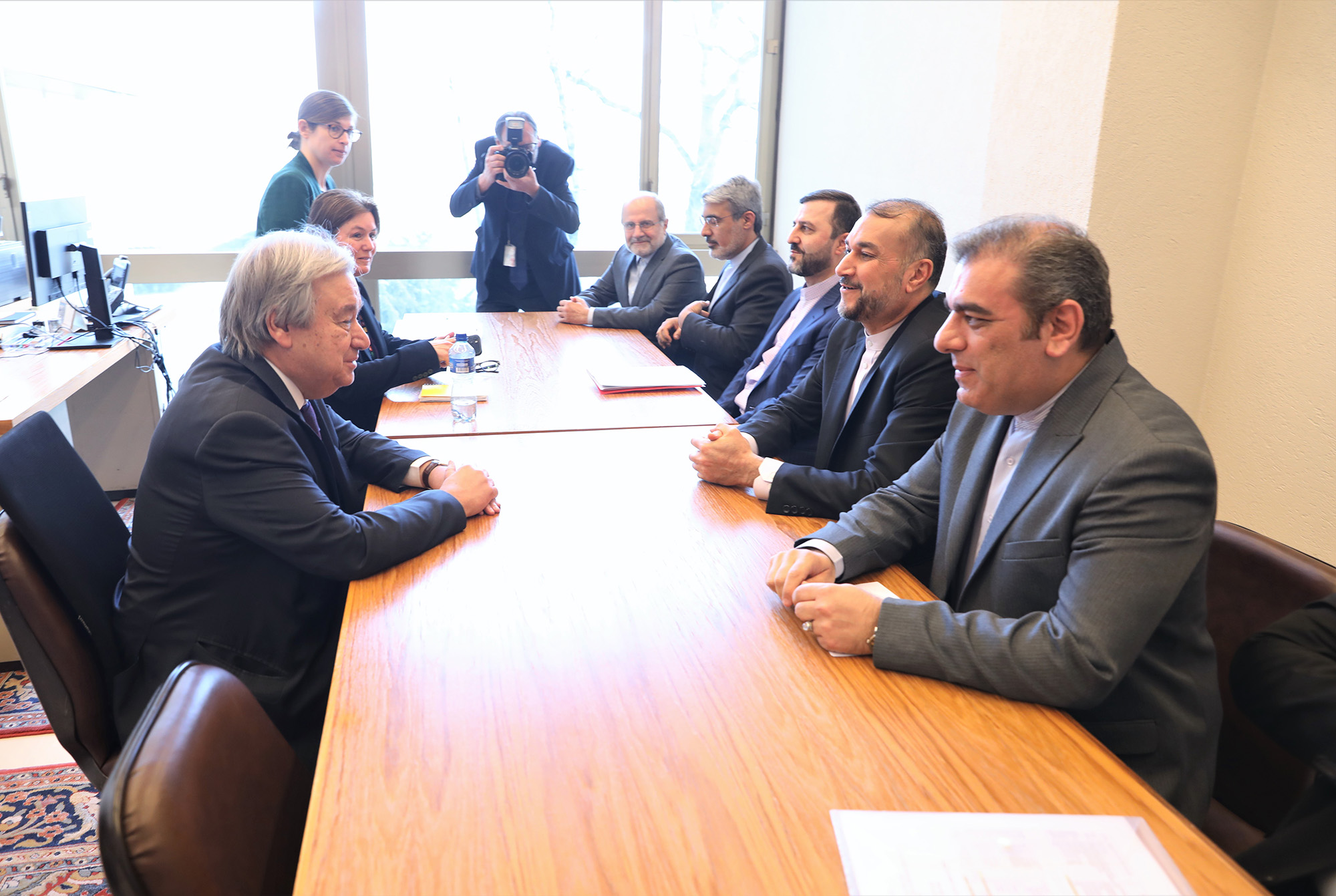 دیدار و گفتگوی دکتر امیرعبداللهیان وزیر امور خارجه کشورمان با آنتونیو گوترش دبیرکل سازمان ملل متحد در دفتر اروپایی سازمان ملل در ژنو