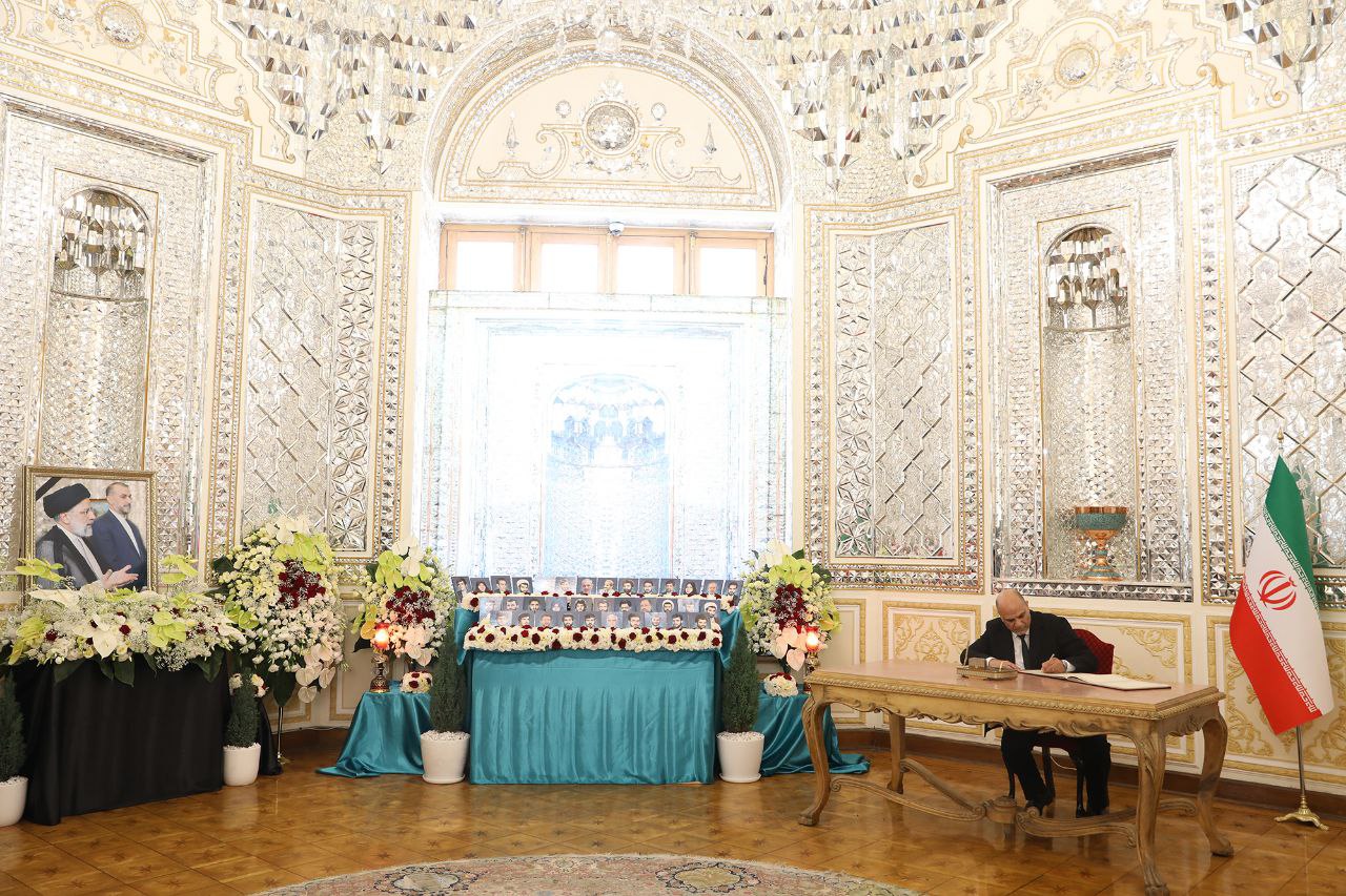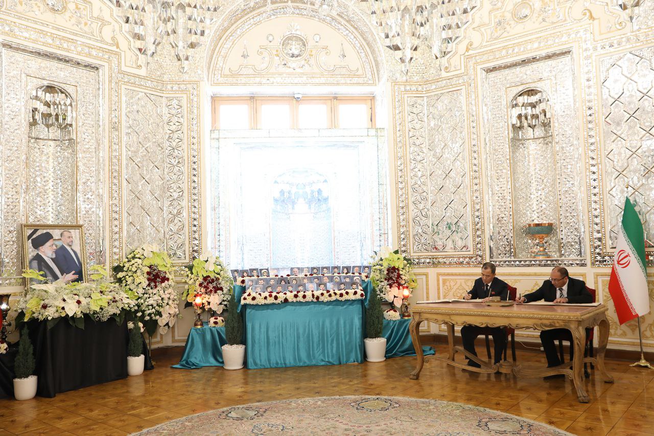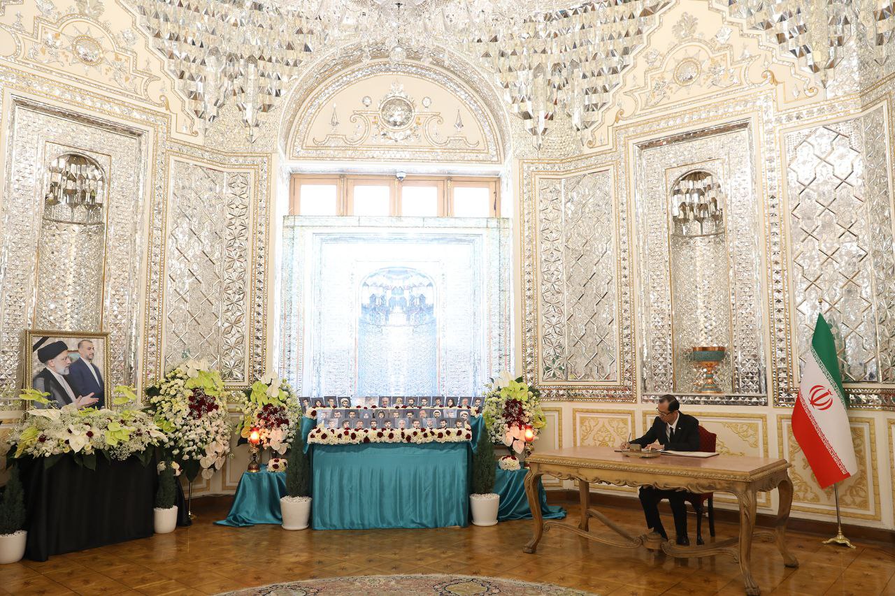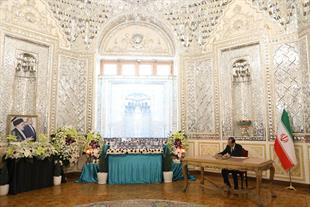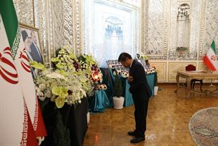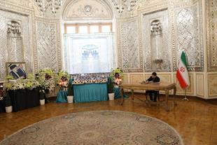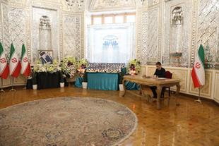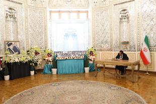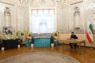 مراسم ادای احترام و امضای دفتر یادبود شهدای خدمت توسط سفرا و روسای نمایندگیهای خارجی مقیم جمهوری اسلامی ایران