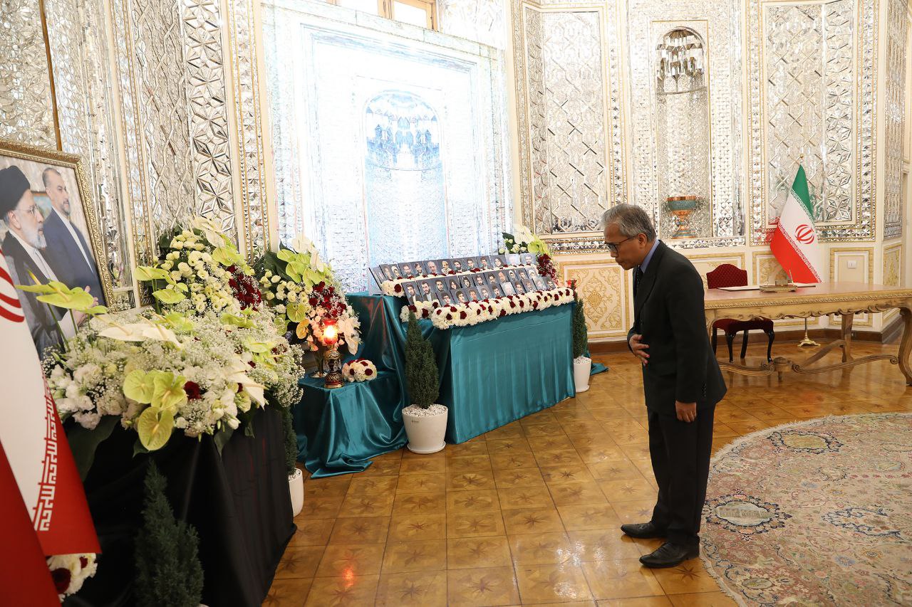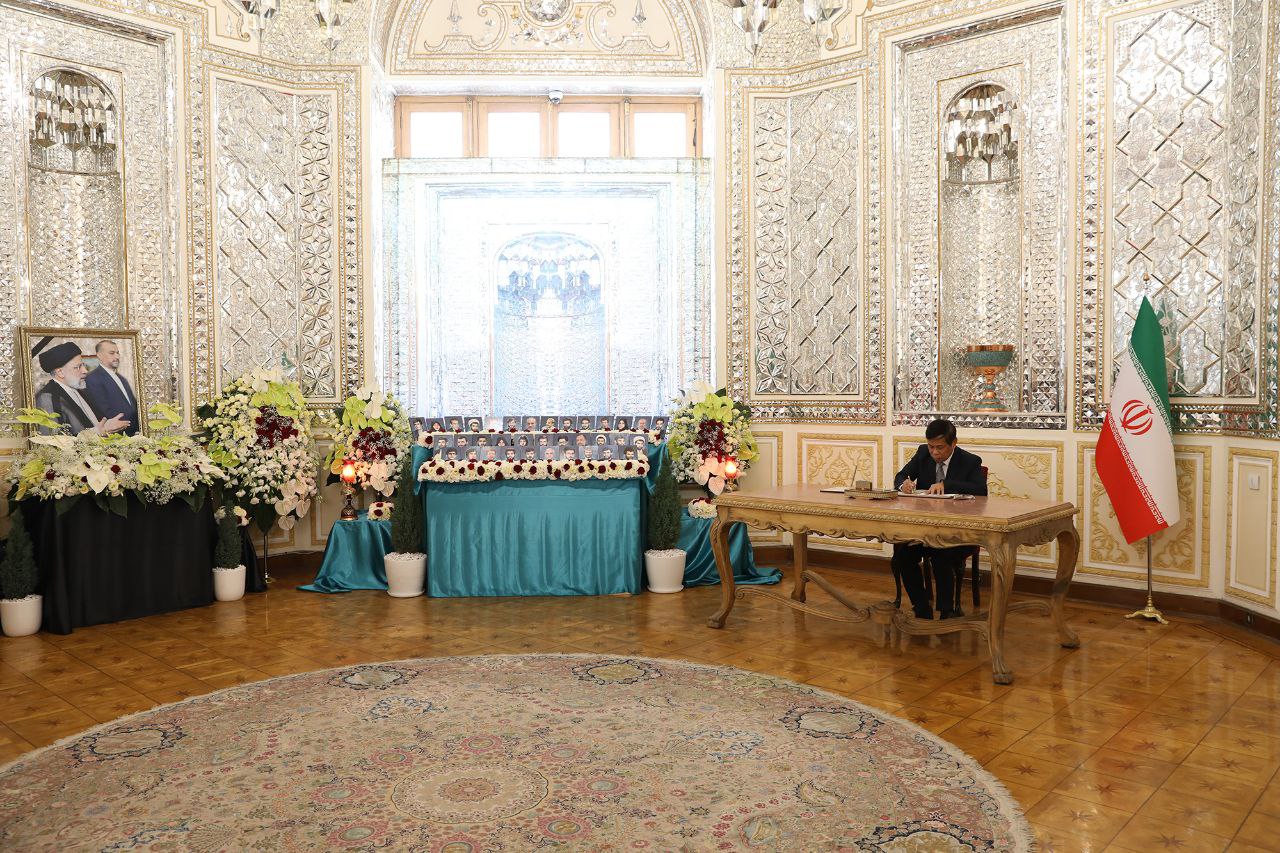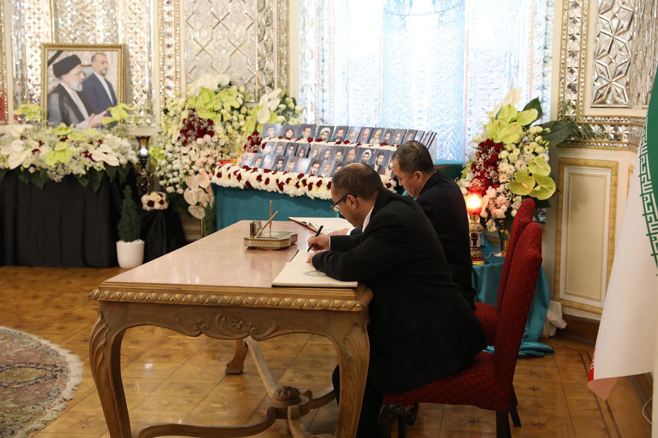 مراسم ادای احترام و امضای دفتر یادبود شهدای خدمت توسط سفرا و روسای نمایندگیهای خارجی مقیم جمهوری اسلامی ایران