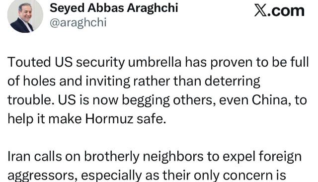 وزیر امور خارجه جمهوری اسلامی اراده ایران برای گفتگو با همه کشورهای منطقه را جدی خواند و افزود: پویش صلح هرمز در همین راستا ارائه شد.
