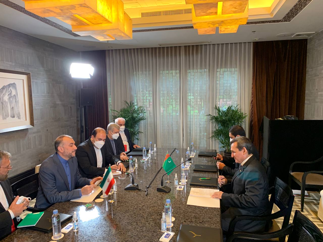 دکتر حسین امیر عبداللهیان وزیر امور خارجه کشورمان و رشید مردوف وزیر امور خارجه ترکمنستان در حاشیه نشست وزرای امورخارجه کشورهای همسایه افغانستان موضوعات مورد علاقه دو کشور را مورد بحث و تبادل نظر قرار دادند.