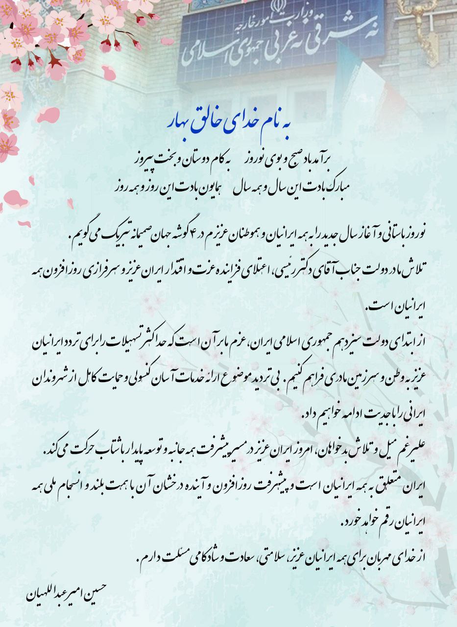 پیام تبریک نوروزی دکتر حسین امیرعبداللهیان وزیر امور خارجه کشورمان خطاب به هموطنان ایرانی خارج از کشور