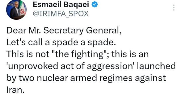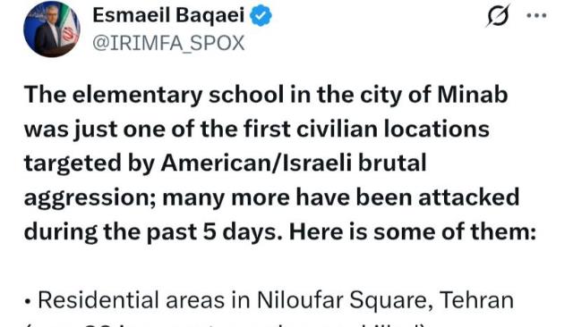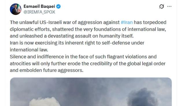 اسماعیل بقائی، سخنگوی وزارت امور خارجه طی پیامی در شبکه ایکس نوشت: