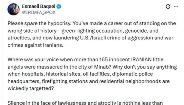 اسماعیل بقائی سخنگوی وزارت امور خارجه با انتشار فیلمی از اقدام متجاوزان آمریکایی در سوء استفاده از حریم یکی از کشورهای همسایه برای حمله موشکی علیه ایران، در پیامی‌شبکه ایکس نوشت: