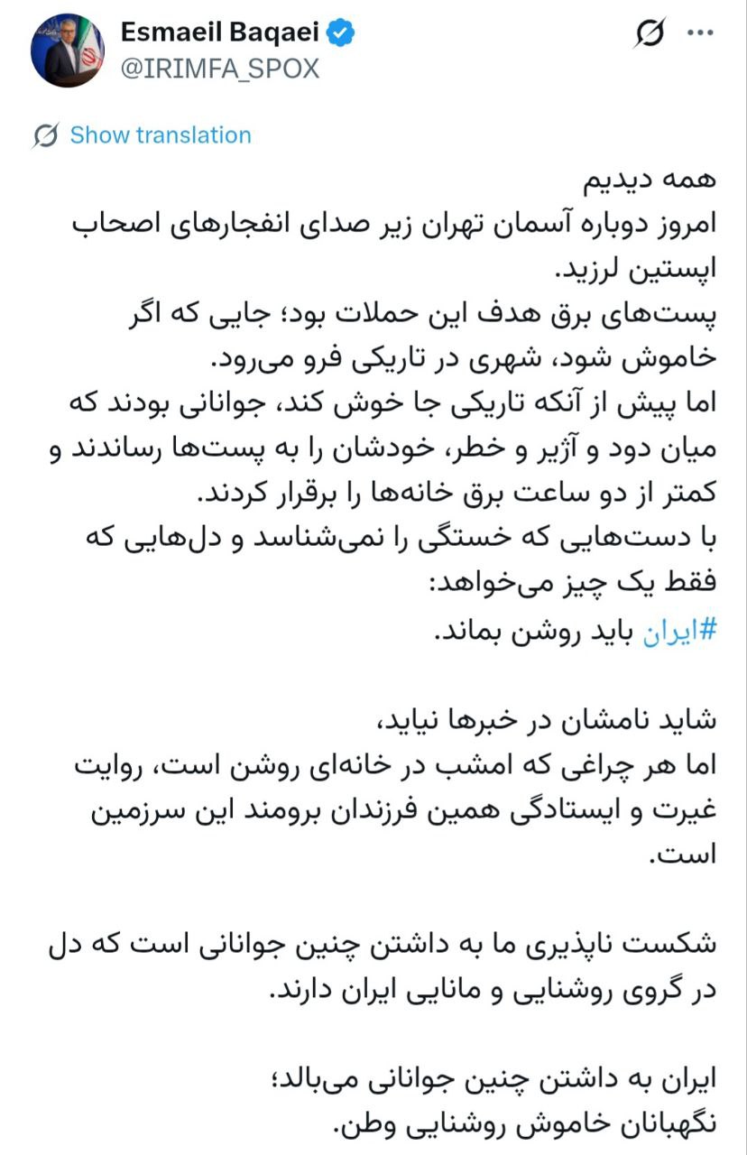 اما هر چراغی که امشب در خانه‌ای روشن است، روایت غیرت و ایستادگی همین فرزندان برومند این سرزمین است.
