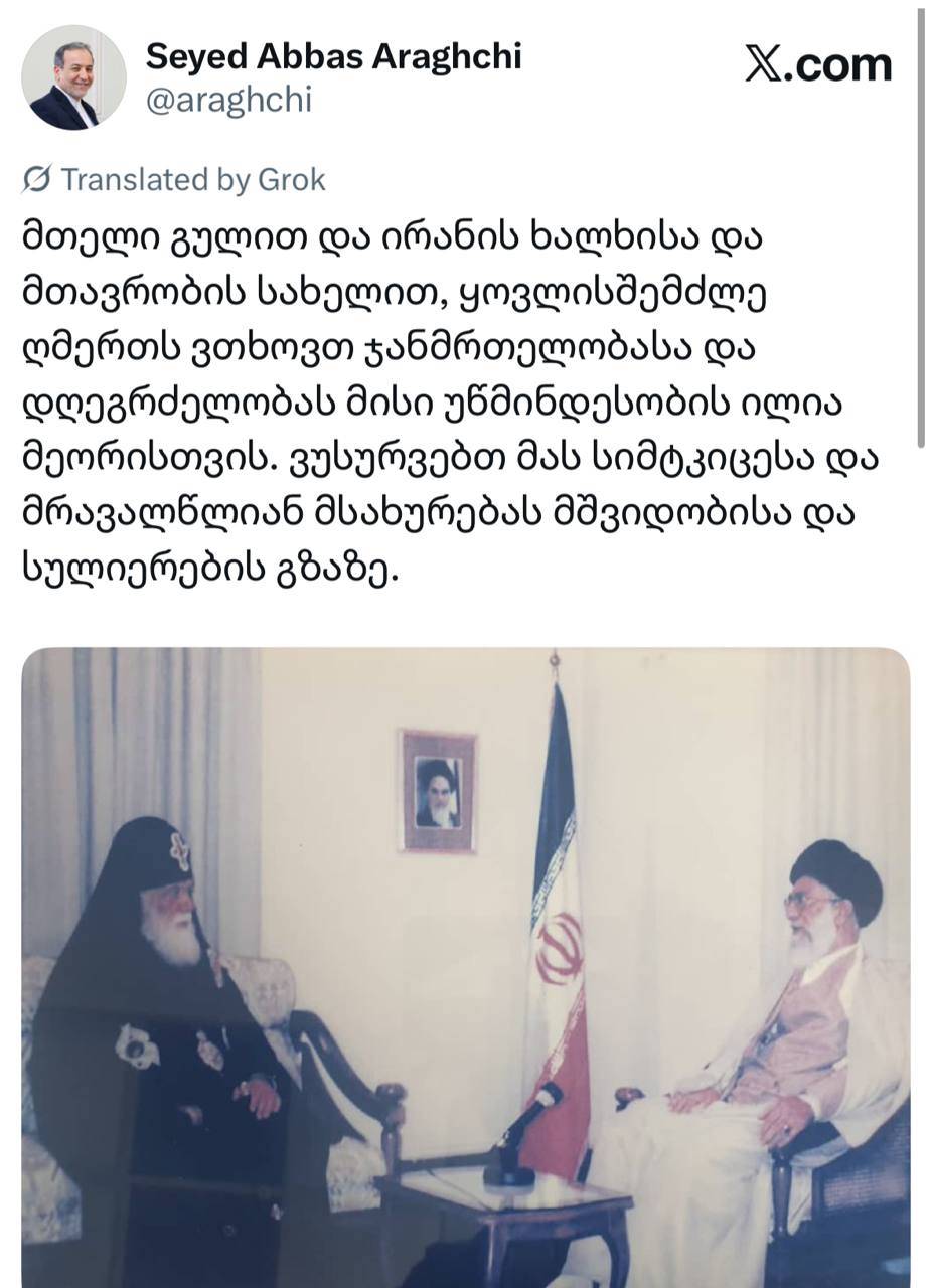 آرزوی سلامتی دکتر عراقچی برای ایلیای دوم رهبر مذهبی گرجستان