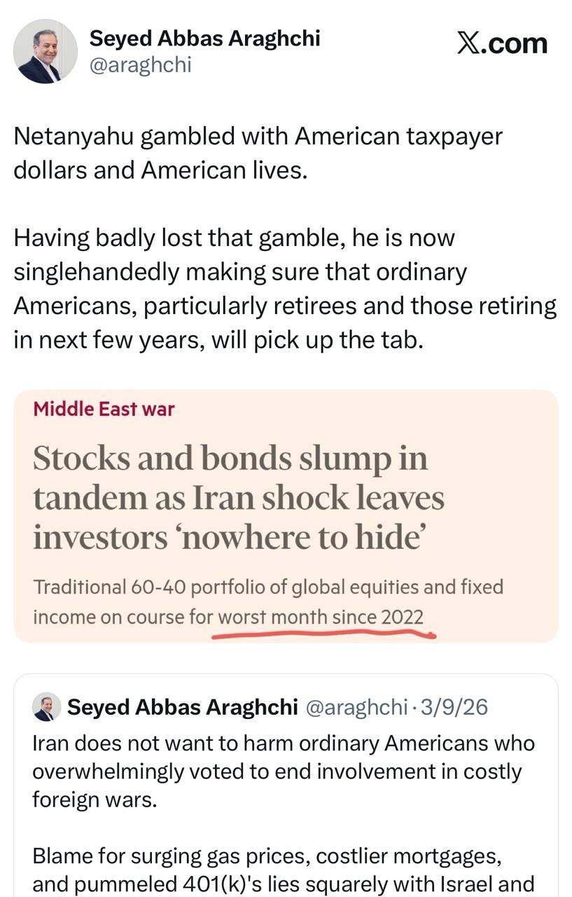 سید عباس عراقچی وزیر امور خارجه: مالیات و جان آمریکایی‌ها هزینه قمار نتانیاهو شد