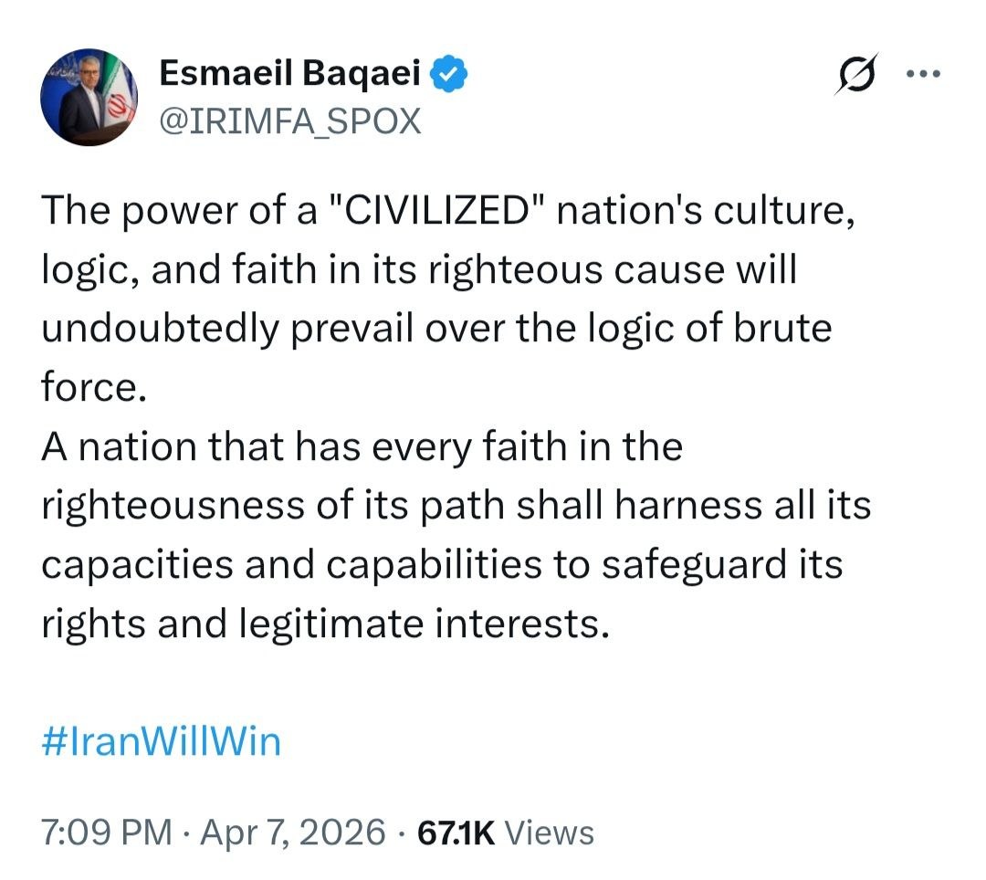 اسماعیل بقائی سخنگوی وزارت امور خارجه در واکنش به لفاظیهای مقامات آمریکایی علیه ملت ایران در شبکه ایکس نوشت: