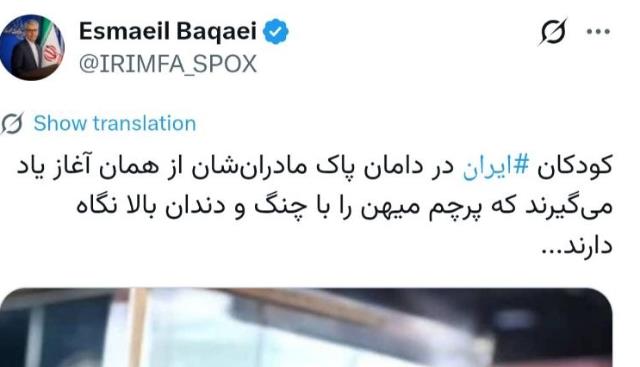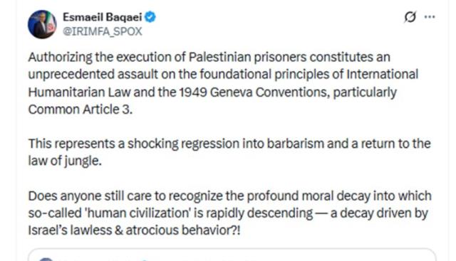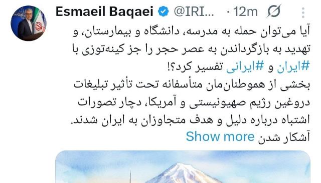 اسماعیل بقائی سخنگوی وزارت امور خارجه، حملات وحشیانه امروز رژیم صهیونیستی به مناطق مختلف لبنان که منجر به شهید و زخمی‌شدن صد‌ها شهروند لبنانی شد را به شدت محکوم کرد و آن را جنایتی شنیع و شرم‌آور دانست.