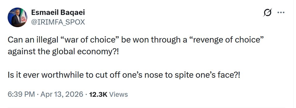 اسماعیل بقائی سخنگوی وزارت امور خارجه در واکنش به تحرکات آمریکا در خلیج فارس و تهدید به محاصره تنگه هرمز، در شبکه ایکس نوشت: